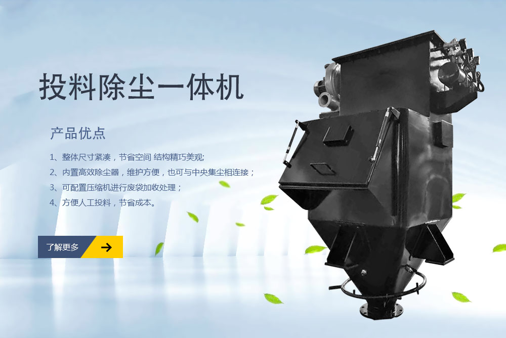 投料除塵一體機(jī),它本體包含了一個(gè)過(guò)濾除塵系統(tǒng),結(jié)構(gòu)緊湊。通過(guò)除塵系統(tǒng)回收的物料靠重力落進(jìn)貯料斗